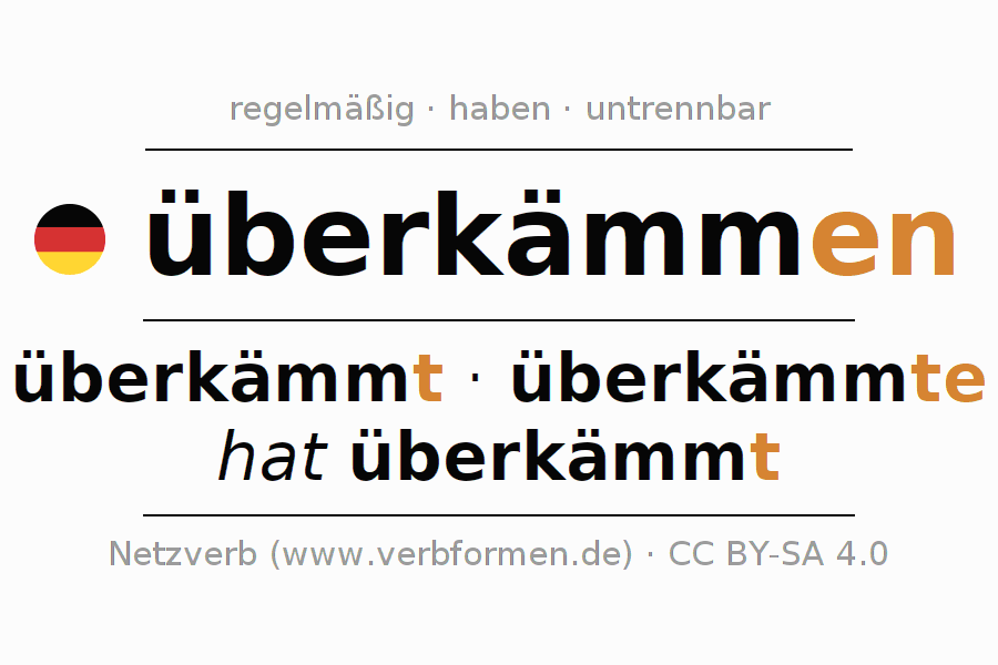 Das Verb überkämmen vollständig in allen Personen und Numeri im Partizip Präsens Perfekt konjugiert