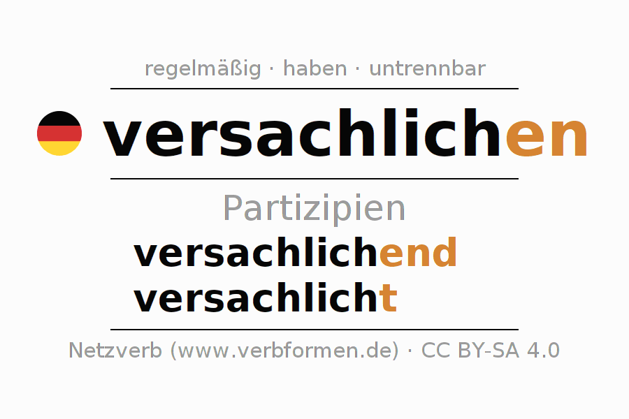 Das Verb versachlichen vollständig in allen Personen und Numeri im Partizip Präsens Perfekt konjugiert