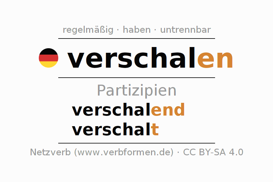 Das Verb verschalen vollständig in allen Personen und Numeri im Partizip Präsens Perfekt konjugiert