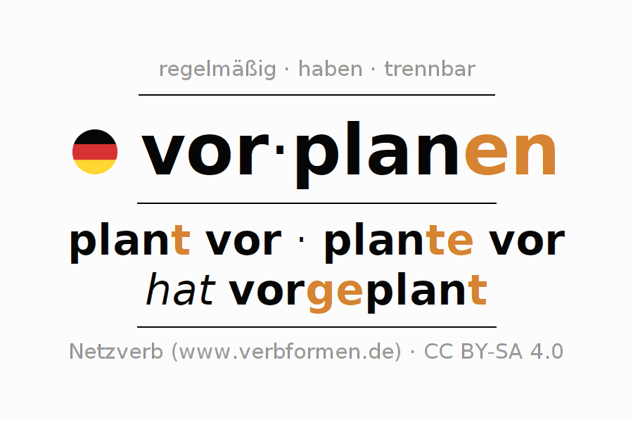 Das Verb vorplanen vollständig in allen Personen und Numeri im Partizip Präsens Perfekt konjugiert