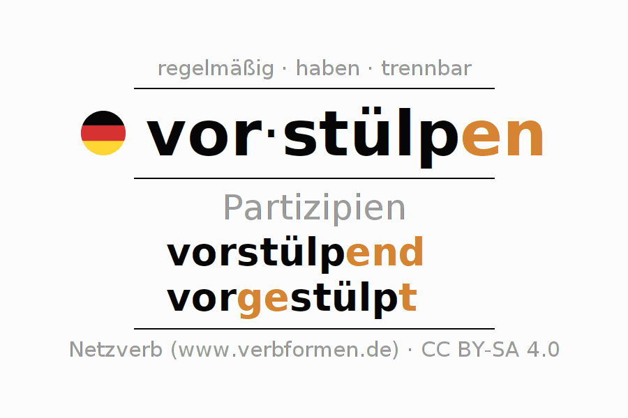 Das Verb vorstülpen vollständig in allen Personen und Numeri im Partizip Präsens Perfekt konjugiert