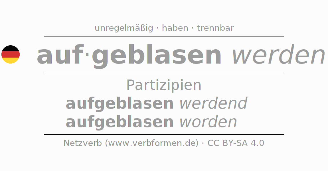Das Verb aufblasen vollständig in allen Personen und Numeri im Partizip Präsens Perfekt konjugiert