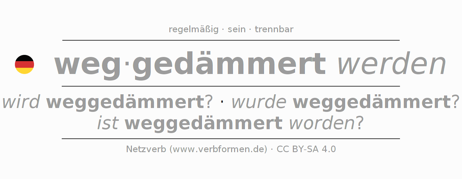 Das Verb wegdämmern vollständig in allen Personen und Numeri im Partizip Präsens Perfekt konjugiert