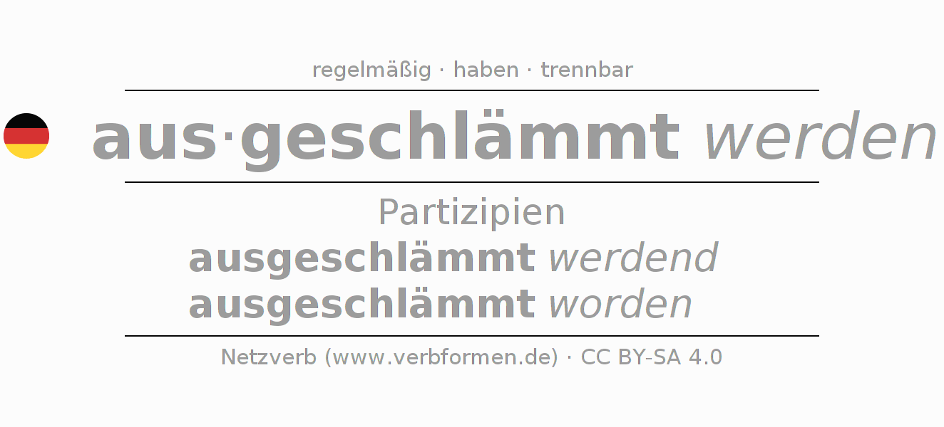 Das Verb ausschlämmen vollständig in allen Personen und Numeri im Partizip Präsens Perfekt konjugiert