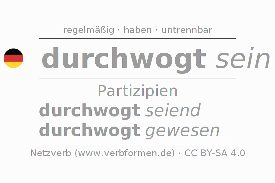 Das Verb durchwogen vollständig in allen Personen und Numeri im Partizip Präsens Perfekt konjugiert
