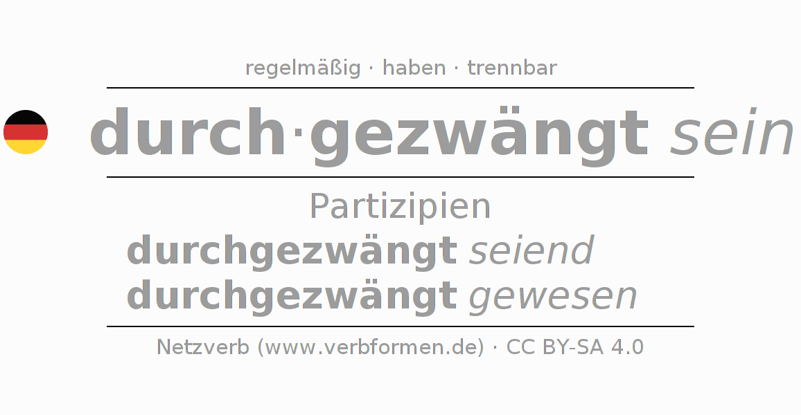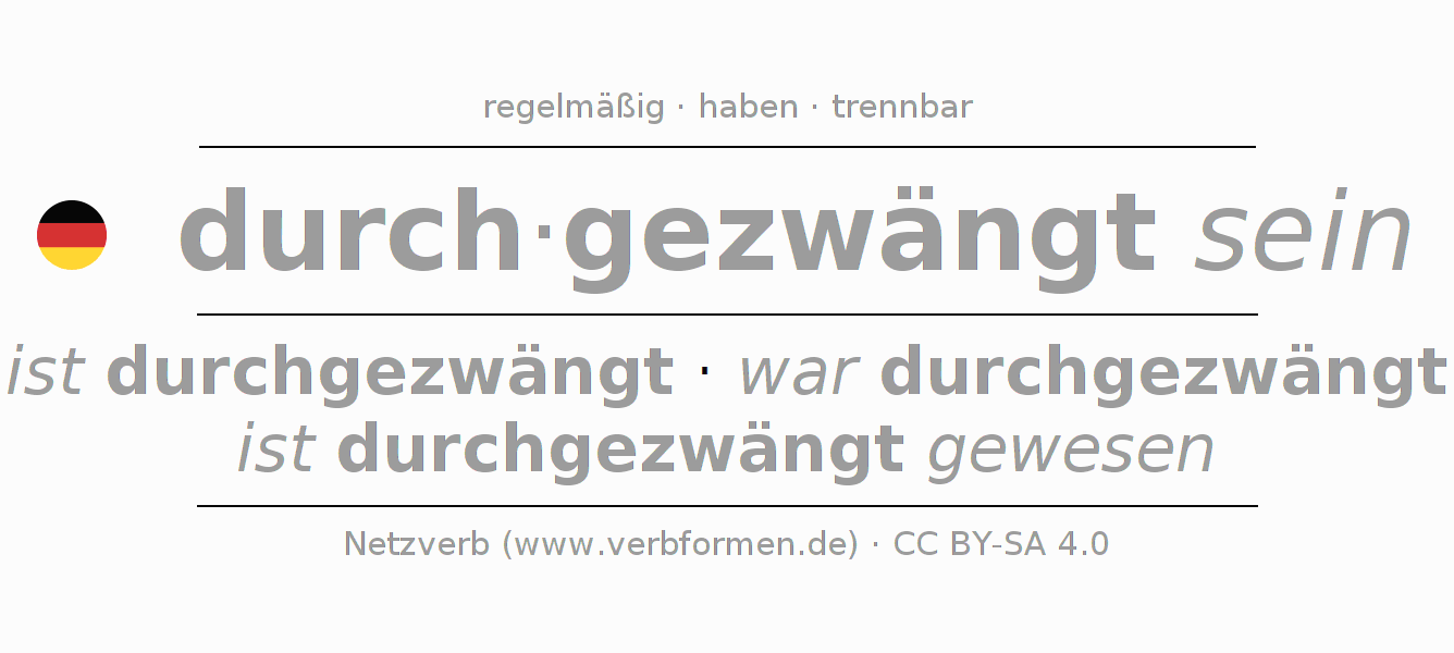 Das Verb durchzwängen vollständig in allen Personen und Numeri im Partizip Präsens Perfekt konjugiert