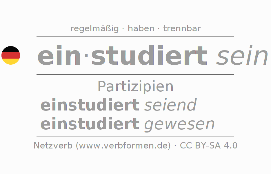 Das Verb einstudieren vollständig in allen Personen und Numeri im Partizip Präsens Perfekt konjugiert
