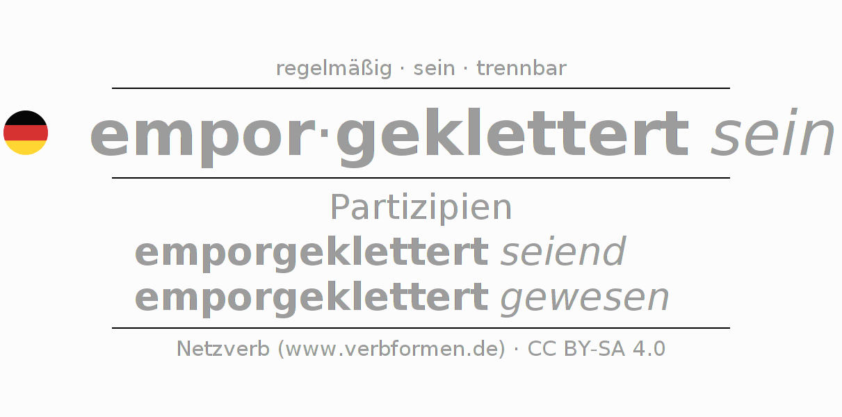 Das Verb emporklettern vollständig in allen Personen und Numeri im Partizip Präsens Perfekt konjugiert