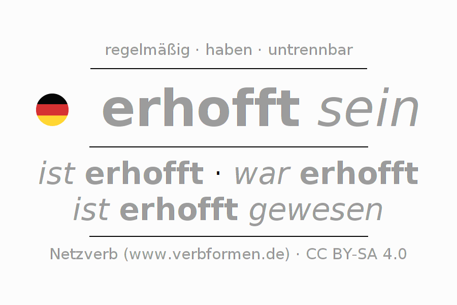 Das Verb erhoffen vollständig in allen Personen und Numeri im Partizip Präsens Perfekt konjugiert