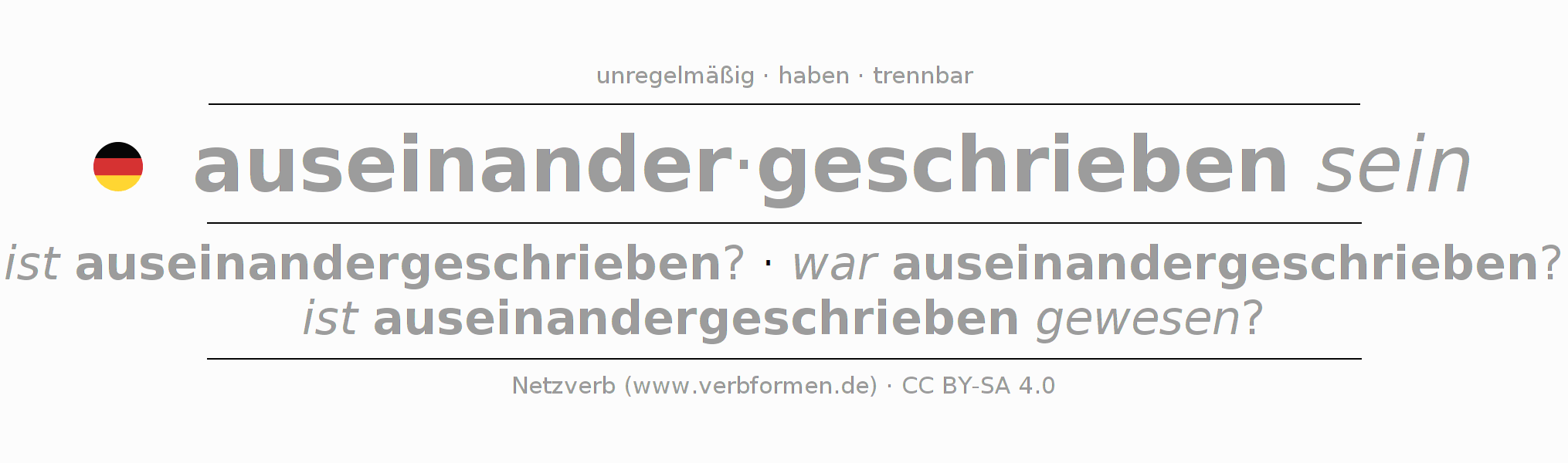 Partizip des Verbs auseinanderschreiben 〈Zustandspassiv〉 〈Fragesatz〉