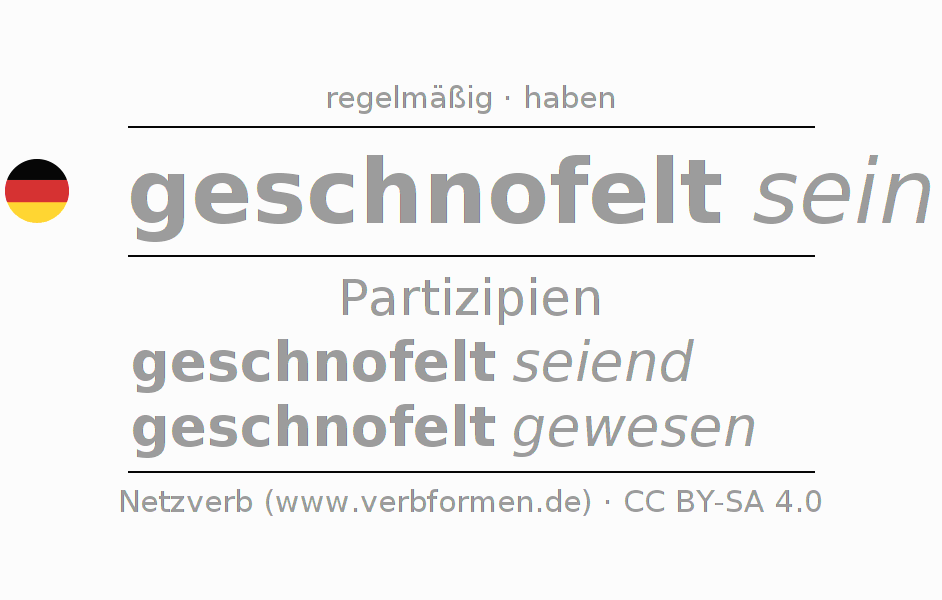 Das Verb schnofeln vollständig in allen Personen und Numeri im Partizip Präsens Perfekt konjugiert