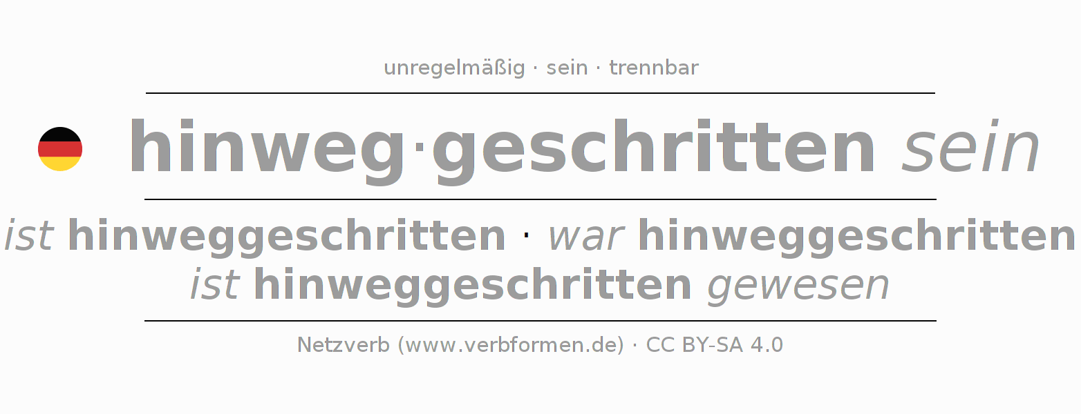Das Verb hinwegschreiten vollständig in allen Personen und Numeri im Partizip Präsens Perfekt konjugiert