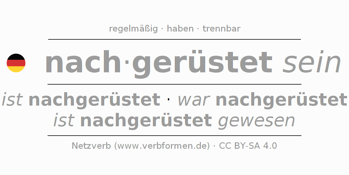 Das Verb nachrüsten vollständig in allen Personen und Numeri im Partizip Präsens Perfekt konjugiert