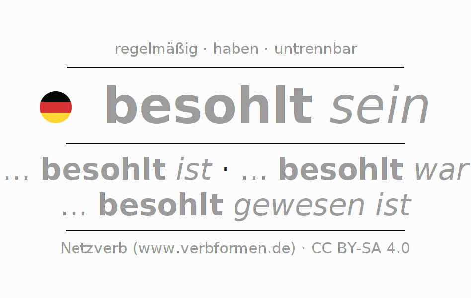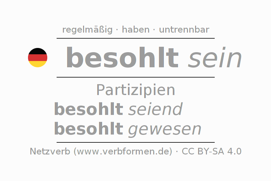 Die Konjugation von besohlen im Partizip Präsens Perfekt Mittelwort Zustandspassiv ist: besohlt seiend, besohlt gewesen.Die Bildung dieser Formen entspricht gewissen grammatischen Regeln. So auch die Vorgaben zur Konjugation der einfachen Verbformen von besohlen im Partizip. Kommentare ☆