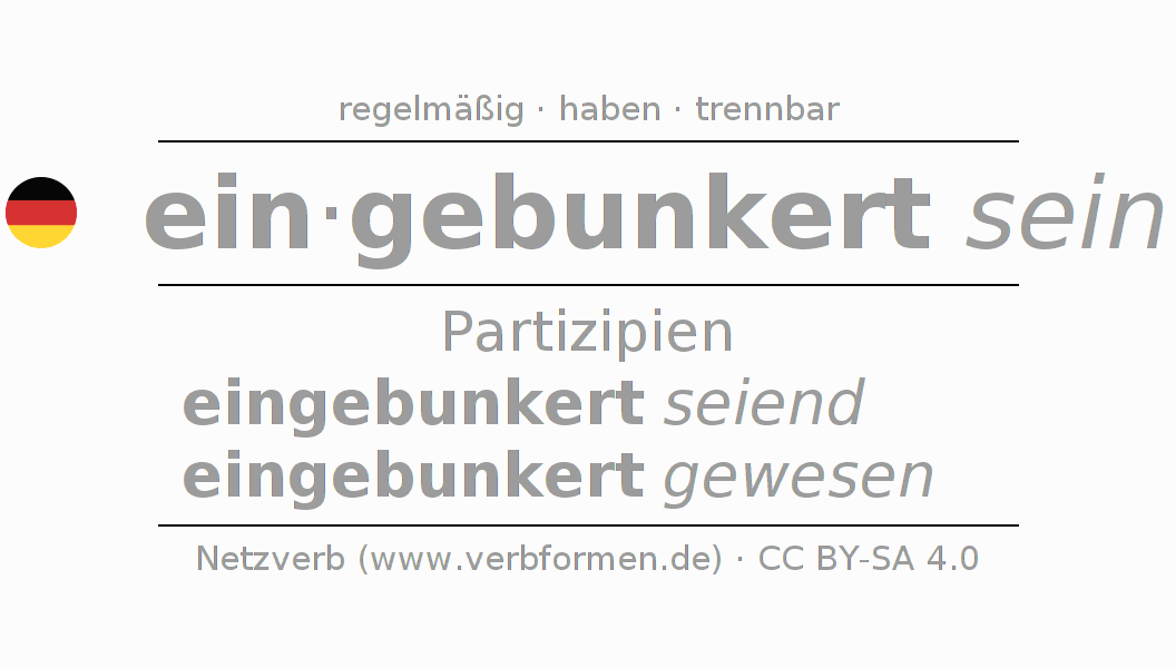 Das Verb einbunkern vollständig in allen Personen und Numeri im Partizip Präsens Perfekt konjugiert
