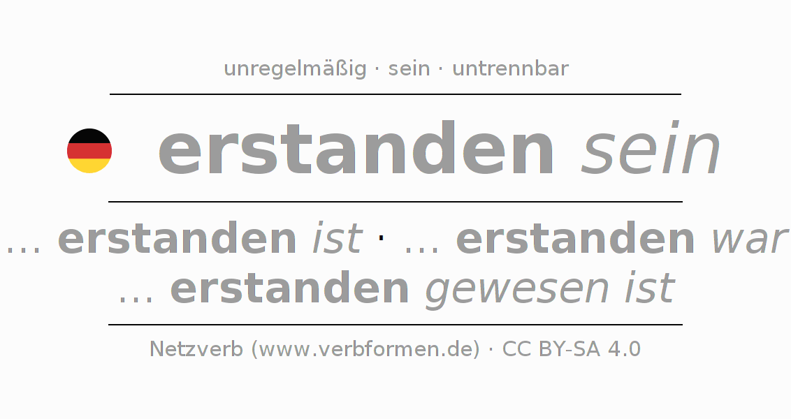 Das Verb erstehen (ist) vollständig in allen Personen und Numeri im Partizip Präsens Perfekt konjugiert