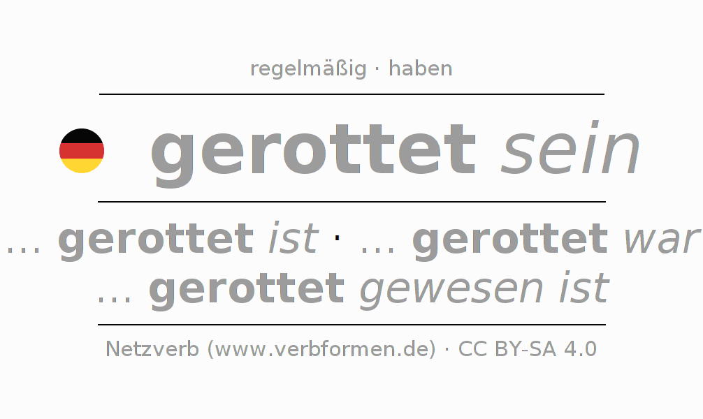 Das Verb rotten (hat) vollständig in allen Personen und Numeri im Partizip Präsens Perfekt konjugiert