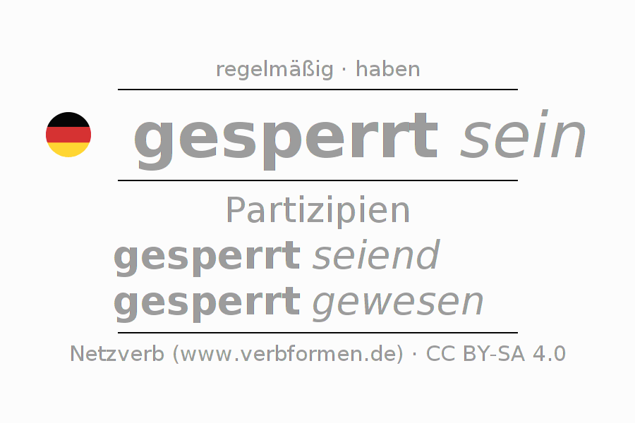 Das Verb sperren vollständig in allen Personen und Numeri im Partizip Präsens Perfekt konjugiert