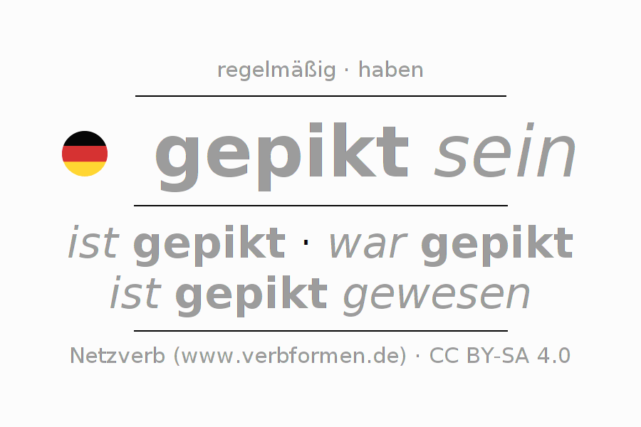 Das Verb piken vollständig in allen Personen und Numeri im Partizip Präsens Perfekt konjugiert