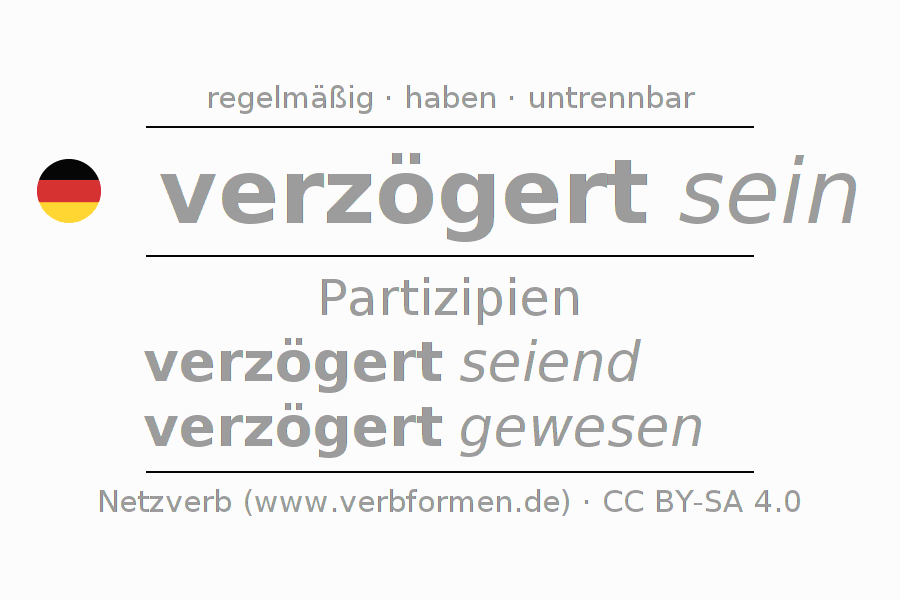 Das Verb verzögern vollständig in allen Personen und Numeri im Partizip Präsens Perfekt konjugiert