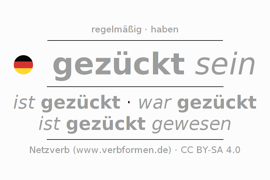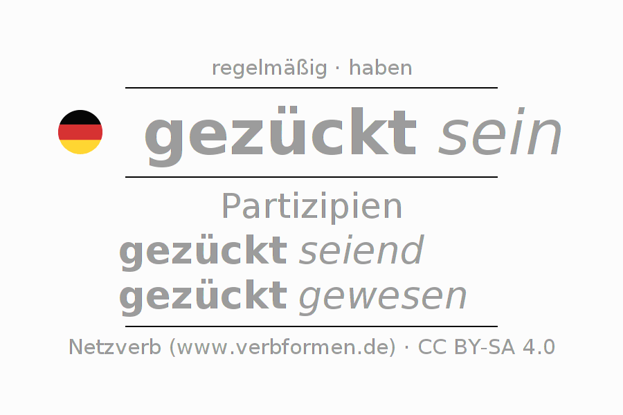Das Verb zücken vollständig in allen Personen und Numeri im Partizip Präsens Perfekt konjugiert
