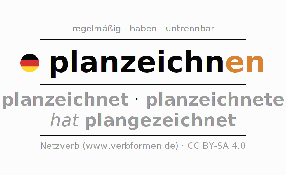 - Präsens: ich planzeichne, du planzeichnest, er planzeichne, wir planzeichnen, ihr planzeichnet, sie planzeichnen