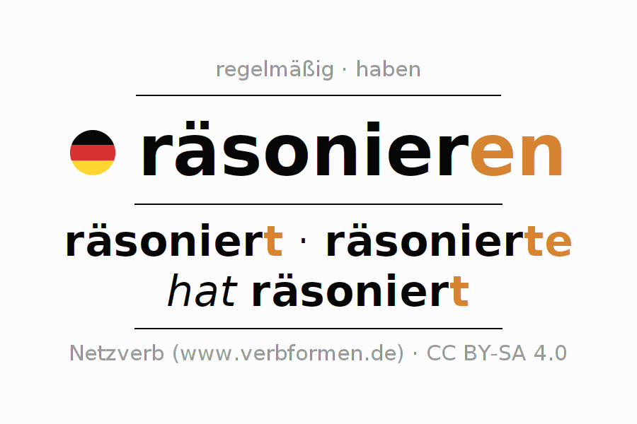 - Präsens: räsonier(e) (du), räsonieren wir, räsoniert (ihr), räsonieren Sie