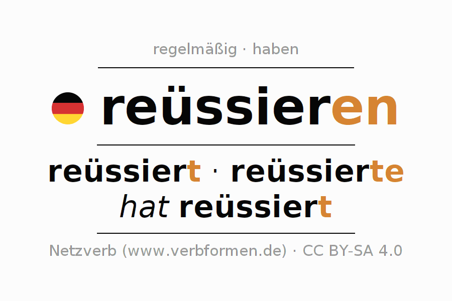 - Infinitiv II: reüssiert haben, reüssiert zu haben