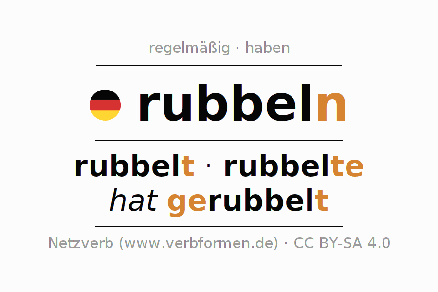 - Futur I: ich werde rubbeln, du werdest rubbeln, er werde rubbeln, wir werden rubbeln, ihr werdet rubbeln, sie werden rubbeln