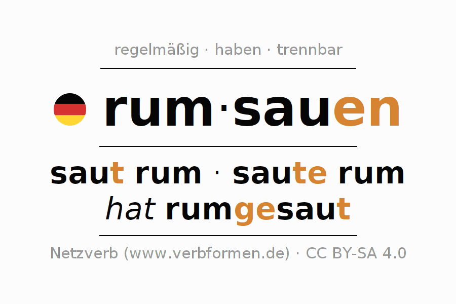 - Präsens: sau(e) (du) rum, sau(e)n wir rum, saut (ihr) rum, sau(e)n Sie rum