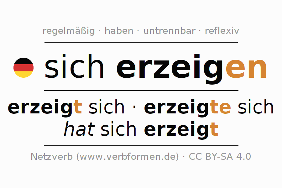 erzeigt sich · erzeigte sich · hat sich erzeigt