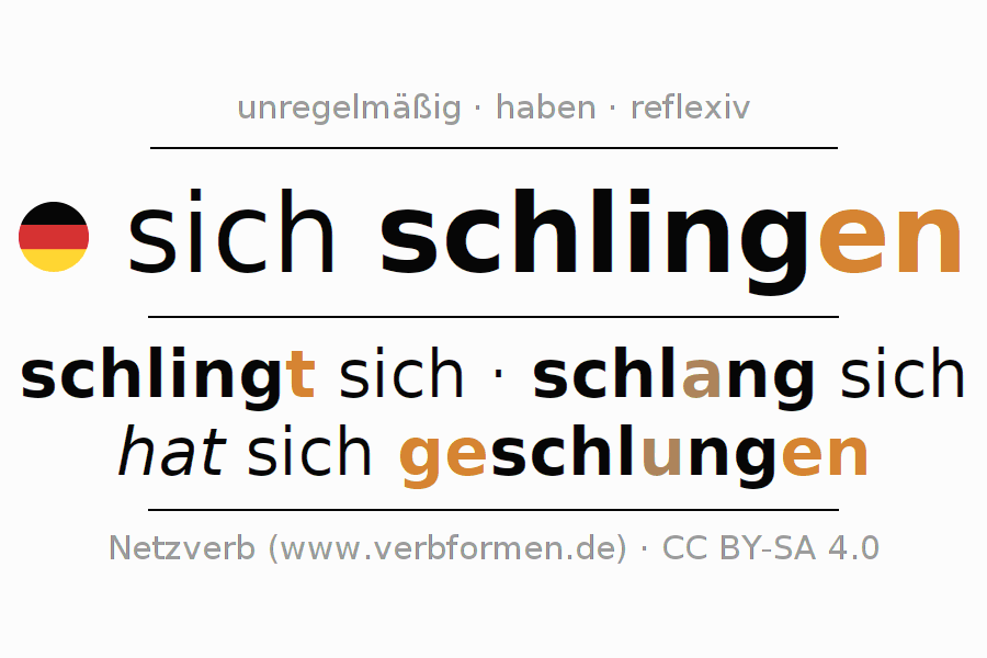 Das Verb sich schlingen konjugiert im Indikativ Aktiv in den Zeitformen Gegenwart, Vergangenheit und Zukunft