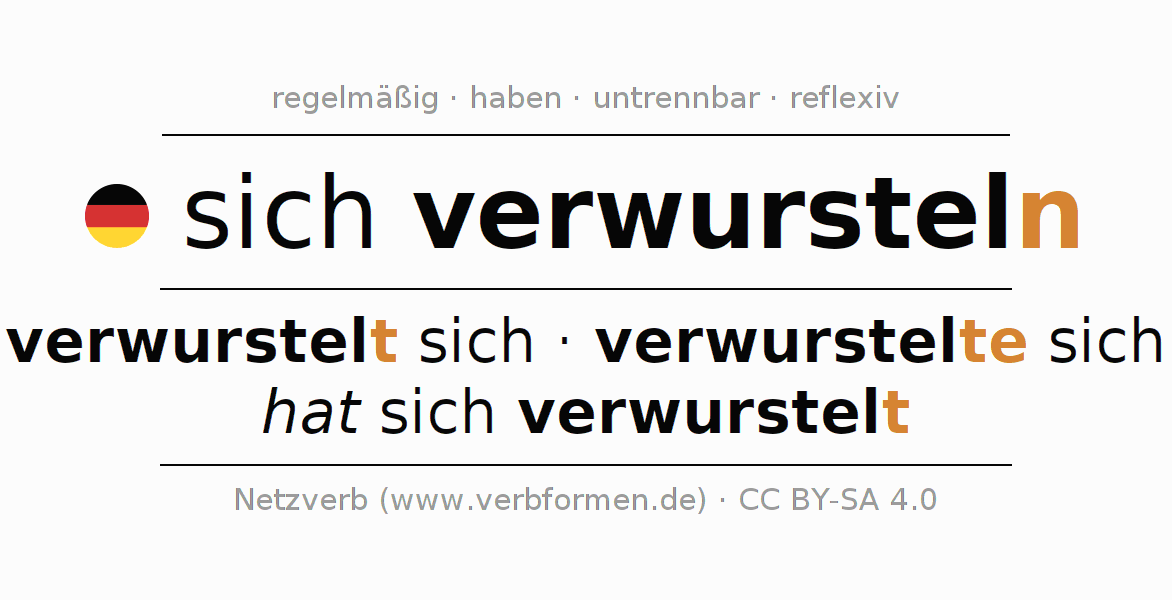 verwurstelt sich · verwurstelte sich · hat sich verwurstelt