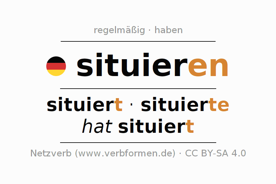 - Perfekt: ich habe situiert, du hast situiert, er hat situiert, wir haben situiert, ihr habt situiert, sie haben situiert