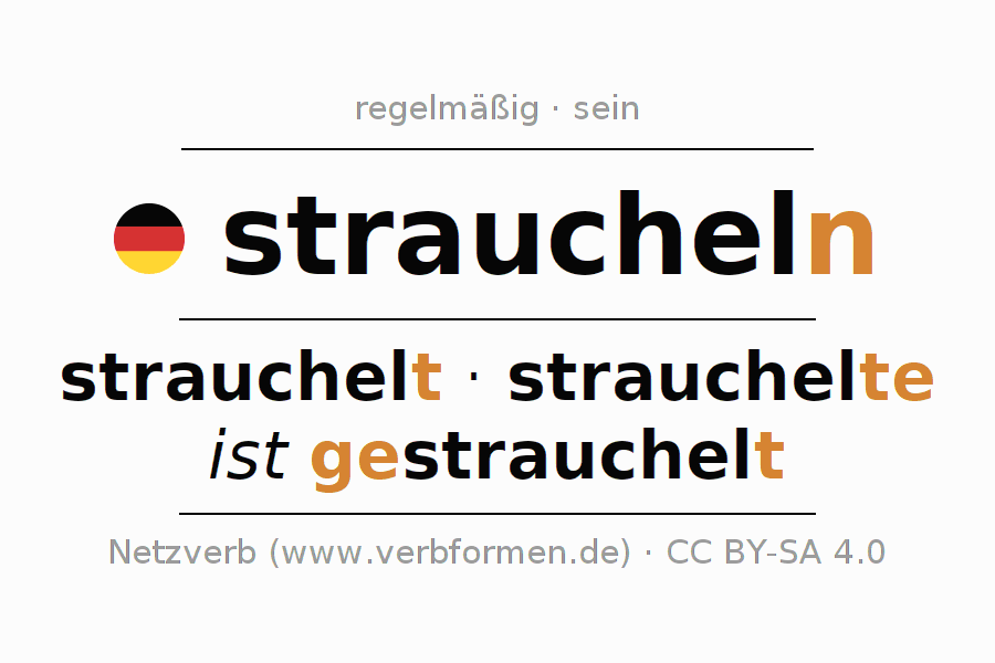 Die straucheln Konjugation online als Verbtabelle mit allen Verbformen in Singular (Einzahl) und Plural (Mehrzahl) in allen Personen (1. Person, 2.Person, 3. Person) übersichtlich dargestellt. Die Beugung bzw. Flexion des Verbs straucheln ist somit eine Hilfestellung für Hausaufgaben, Prüfungen, Klausuren, für den Deutschuntericht der Schule, zum Deutsch Lernen, für das Studium, Deutsch als Fremdsprache (DaZ), Deutsch als Zweitsprache (DaZ) und für die Erwachsenenbildung. Gerade auch für Deutschlernende ist die korrekte Konjugation des Verbs bzw. die korrekt flektierten Formen (strauchelt - strauchelte - ist gestrauchelt) entscheidend. Weitere Informationen finden sich unter Wiktionary straucheln und unter straucheln im Duden.
