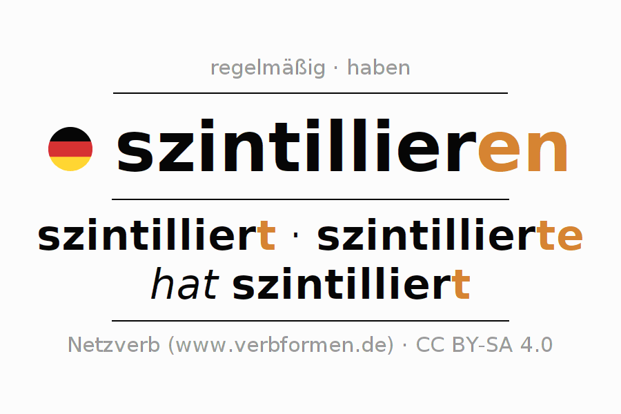 - Präsens: szintillier(e) (du), szintillieren wir, szintilliert (ihr), szintillieren Sie