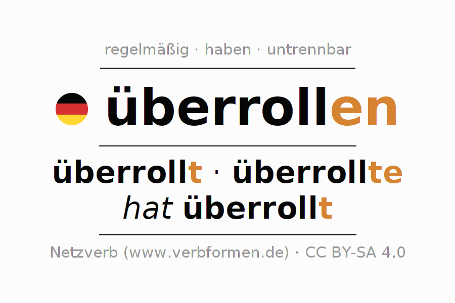 - Perfekt: ich habe überrollt, du hast überrollt, er hat überrollt, wir haben überrollt, ihr habt überrollt, sie haben überrollt