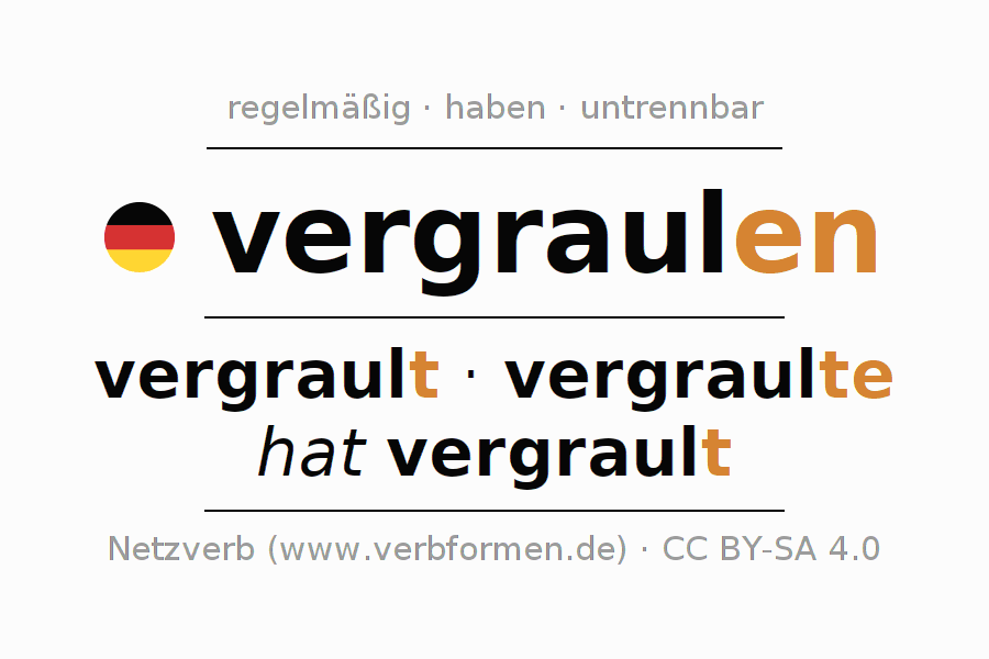 - Präsens: vergraul(e) (du), vergraulen wir, vergrault (ihr), vergraulen Sie