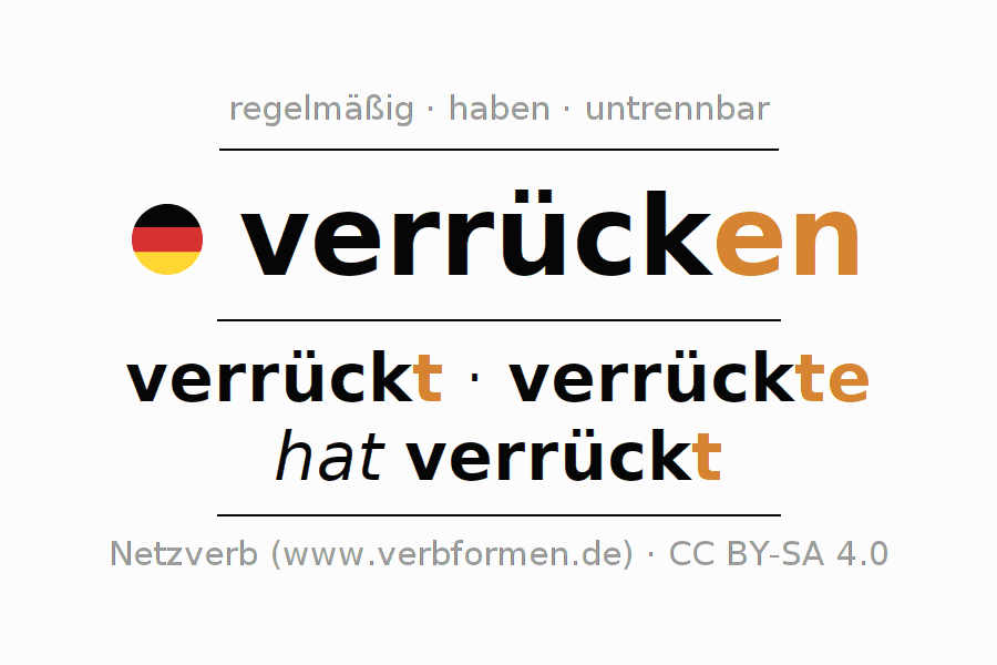 Das Verb verrücken konjugiert im Indikativ Aktiv in den Zeitformen Gegenwart, Vergangenheit und Zukunft
