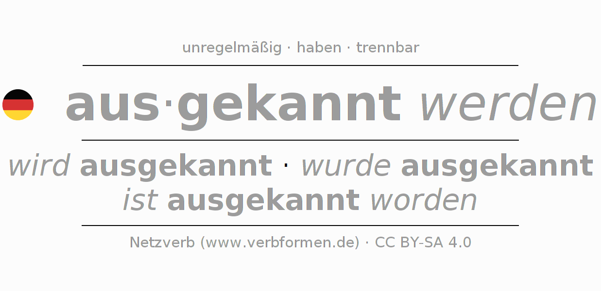 wird ausgekannt · wurde ausgekannt · ist ausgekannt worden