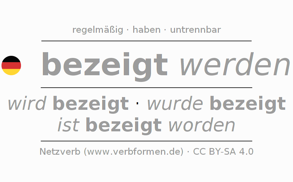 wird bezeigt · wurde bezeigt · ist bezeigt worden