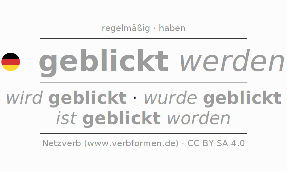 - Futur I: ich werde geblickt werden, du wirst geblickt werden, er wird geblickt werden, wir werden geblickt werden, ihr werdet geblickt werden, sie werden geblickt werden