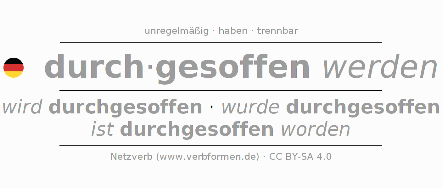 wird durchgesoffen · wurde durchgesoffen · ist durchgesoffen worden