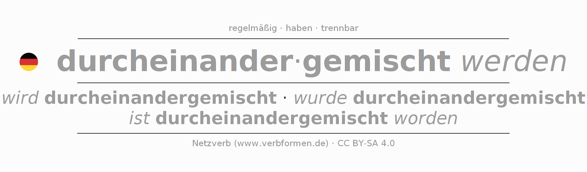 wird durcheinandergemischt · wurde durcheinandergemischt · ist durcheinandergemischt worden