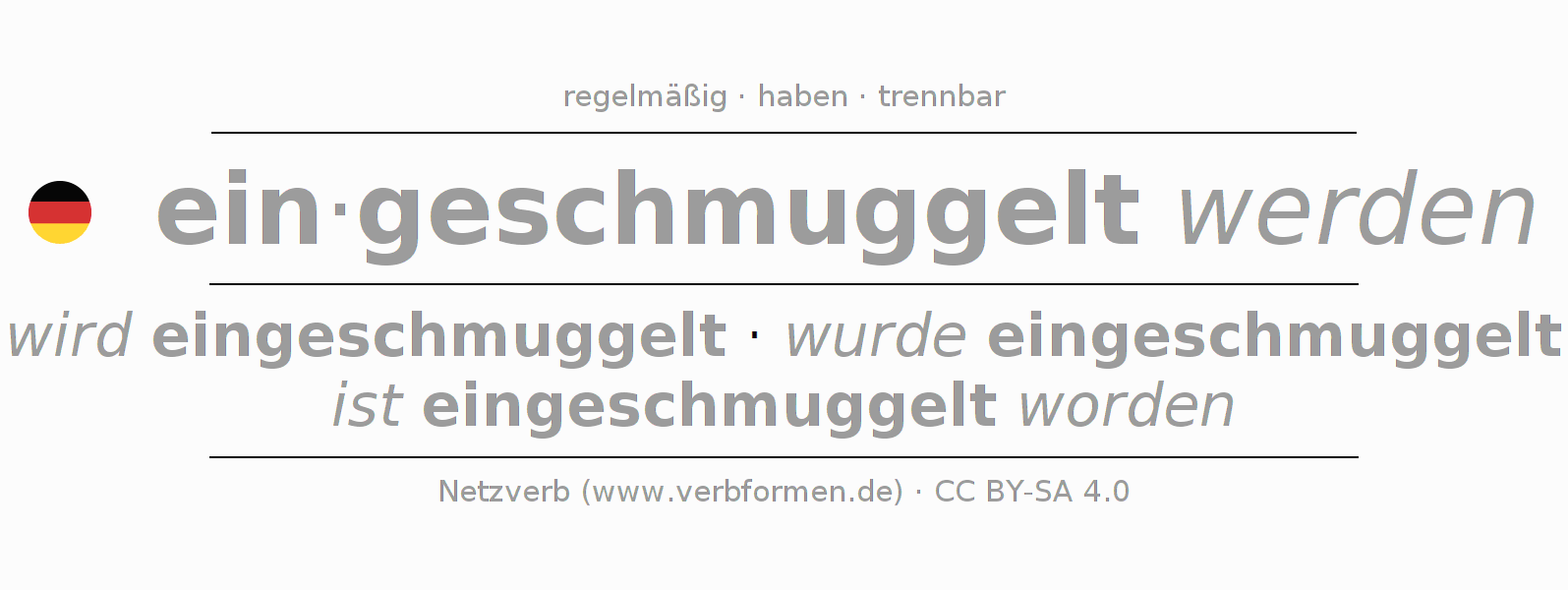 wird eingeschmuggelt · wurde eingeschmuggelt · ist eingeschmuggelt worden