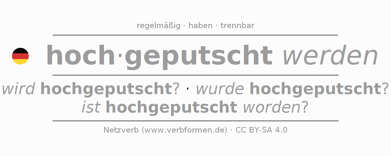 Zusammenfassung aller Zeitformen des Zeitworts, Tätigkeitsworts bzw. Tuworts hochputschen