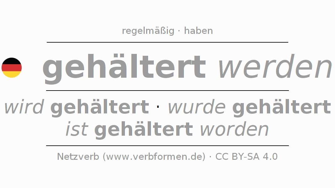 - Perfekt: ich bin gehältert worden, du bist gehältert worden, er ist gehältert worden, wir sind gehältert worden, ihr seid gehältert worden, sie sind gehältert worden
