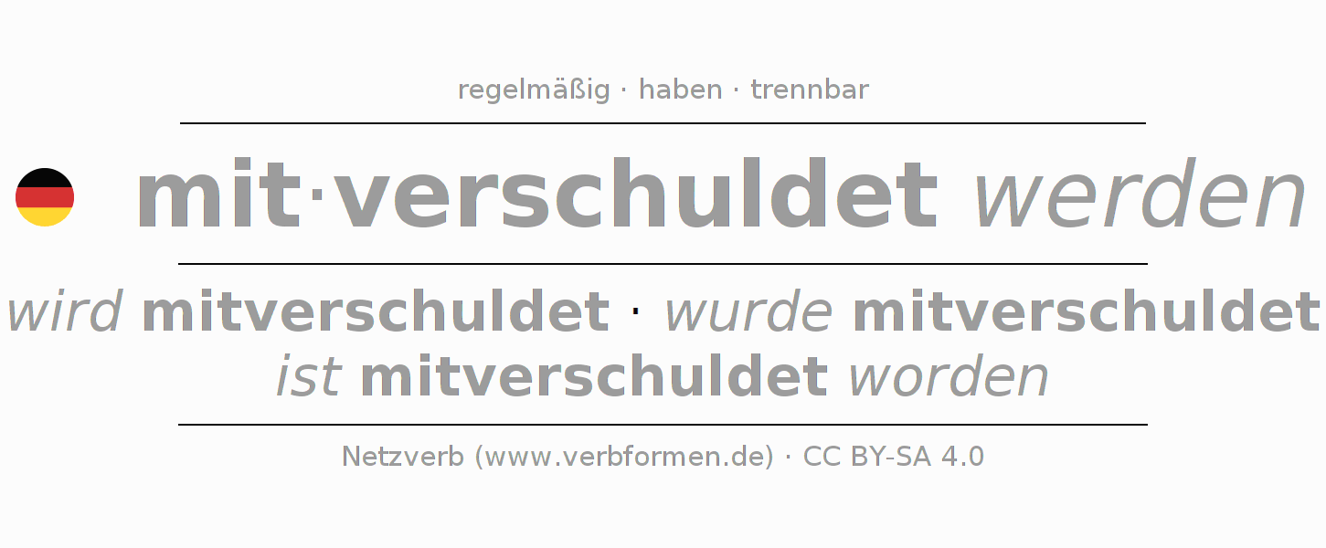 - Präsens: ich werde mitverschuldet, du wirst mitverschuldet, er wird mitverschuldet, wir werden mitverschuldet, ihr werdet mitverschuldet, sie werden mitverschuldet