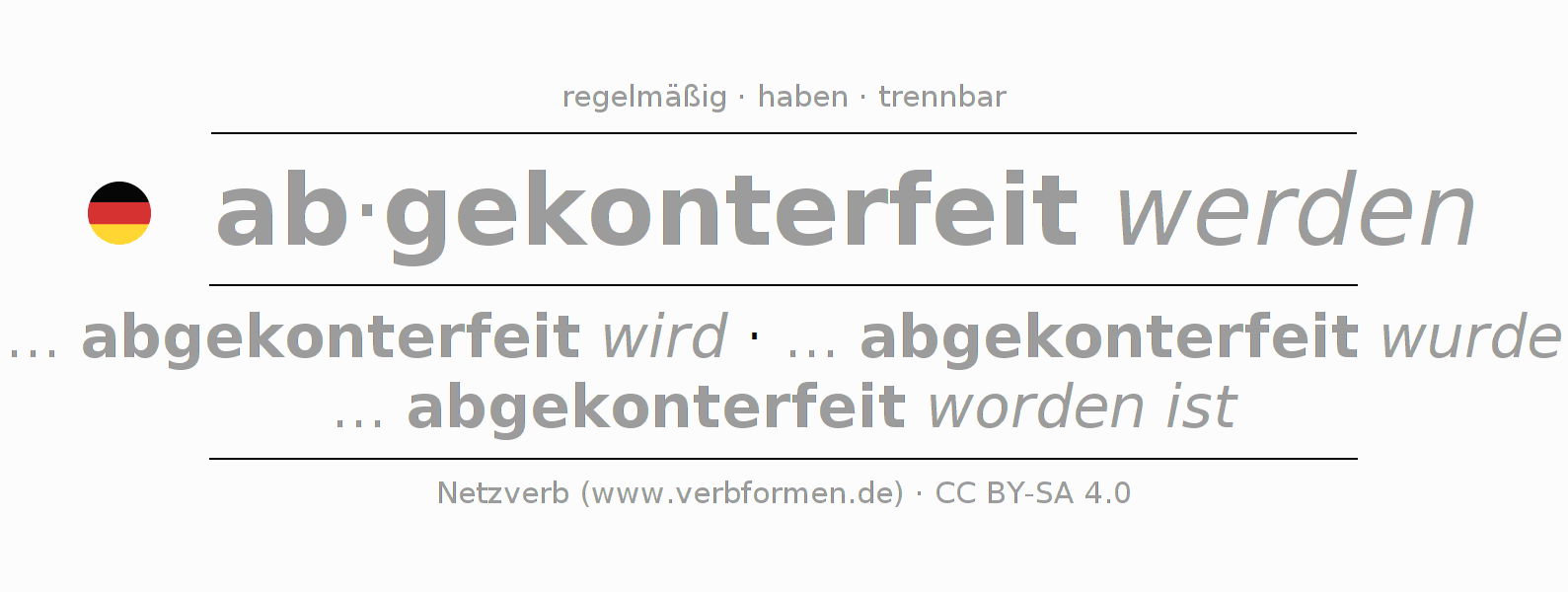 - Infinitiv I: abgekonterfeit werden, abgekonterfeit zu werden
