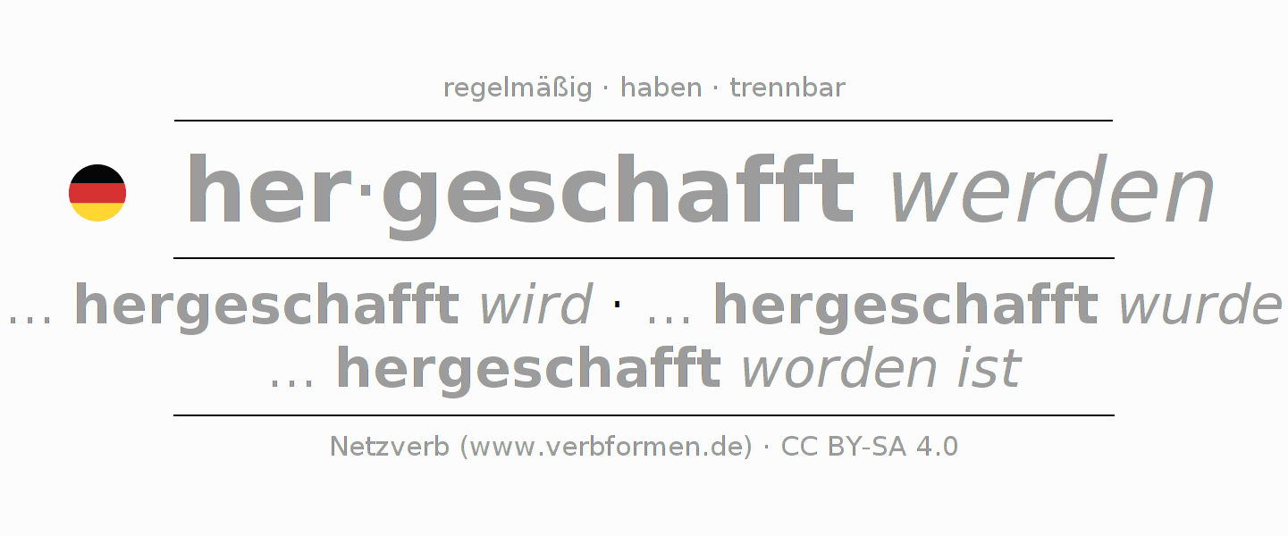 ... hergeschafft wird · ... hergeschafft wurde · ... hergeschafft worden ist